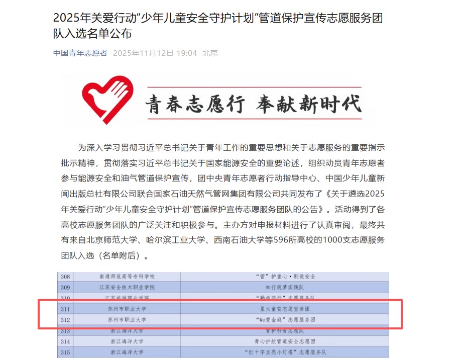我校2支团队入选2025年“少年儿童安全守护计划”管道保护宣传志愿服务团队